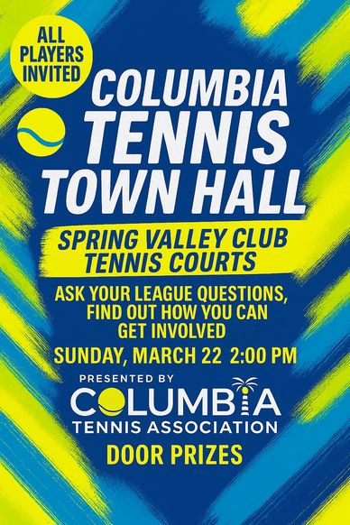 The Columbia Tennis League is part of USTA League Tennis which is the world's largest recreational tennis league providing organized, structured team matches for all ability levels. The program is open to women and men 18 years of age and older and features a local, state, and sectional championship and culminates in a national championship in each skill level (2.5-5.0).